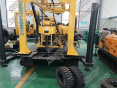 ● 该钻机装有轮式行走机构及液压油缸支柱,整机搬迁方便,便于钻机的水平调整